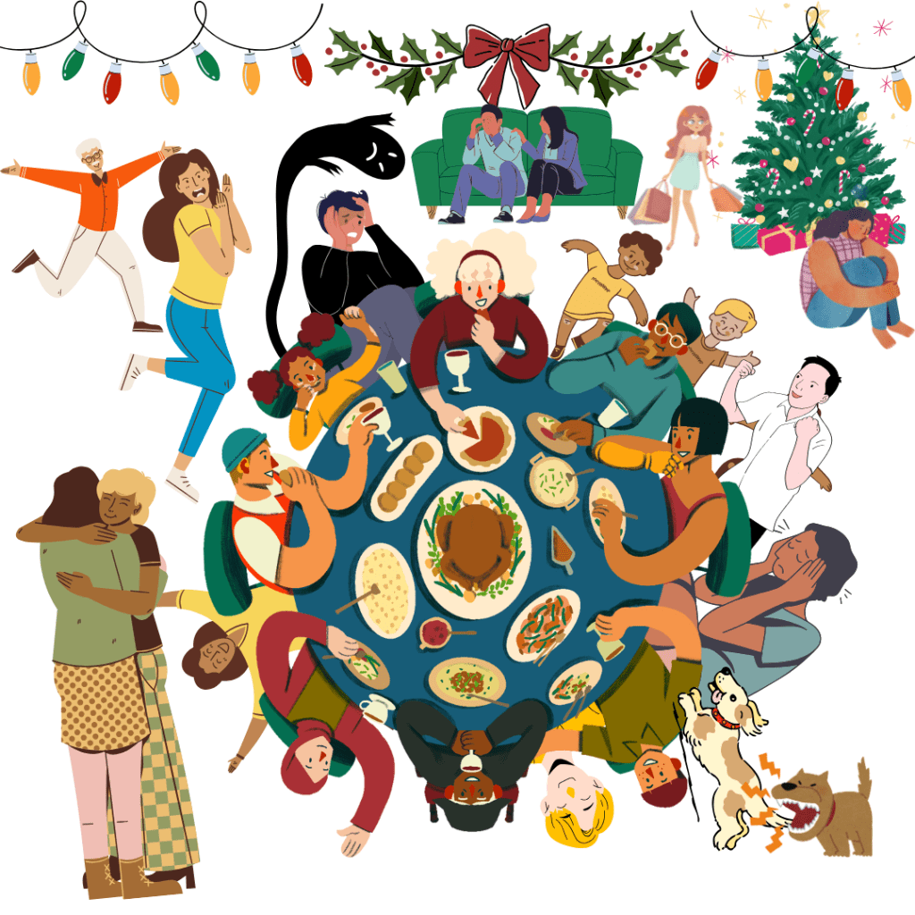Puede que te identifiques con lxs que les encantan estas fechas, te sientas alegre y disfrutes como un niñx de cada encuentro, de cada brindis porque para ti son, como dice C. Foster, un “estoy contigo, me caes bien, formamos una comunidad”, y es una oportunidad para ti de irradiar tu esencia y compartirla con otrx.