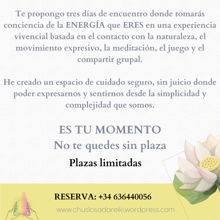 Con estas palabras tan inspiradoras de Thich Nath Hahn de su libro: «Silencio», te propongo un retiro vivencial del Ruido de nuestro cotidiano al Silencio de nuestro interior, poniendo especial atención y conciencia a la energía que Somos, a la energía que ERES.